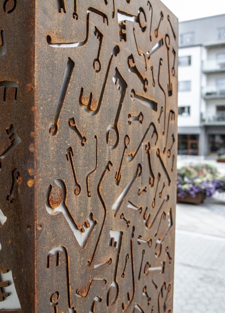 Utformningens mål är att skapa ett trevligt, inbjudande torg med möjlighet för samvaro och ge rum för stadens liv. Torget omfattar omsorgsfulla val av material, växter, möblering och detaljer. Långa sittbänkar med olika höjd kantar den öppna torgytan. Bakom ryggen finns blomstrande planteringar som visar årstidsväxlingarna. Träden kommer med tiden skapa rumslighet och ge torget stadga. I projektet ingick samarbete med konstnär för utformning av skärmar, trädgaller och ljuspelare för rumsförstärkning, dessa detaljer tog avstamp i platsens historiska betydelse. Belysningen har en framträdande roll i gestaltningen, där belysningskonceptet framarbetades i samråd med belysningsdesigner. I processen genomfördes provbelysning för att säkerställa bästa möjliga ljusbild för torget.
